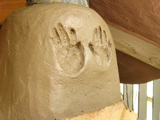 As we mosaic tiled the shower space the family would bring us treasures and momentos to put in the wall. If you go see it someday you will find obsidian, shells, marbles, a piece of Jack's favorite ceramic drum ever, glass that Kya found, and Grandma's old plate. There is even a slate chalkboard outside and there might even be a prayer or two behind the lava mountain. The tile we used for the mosaic was all purchased from recycled building supply stores and tile seconds sales.